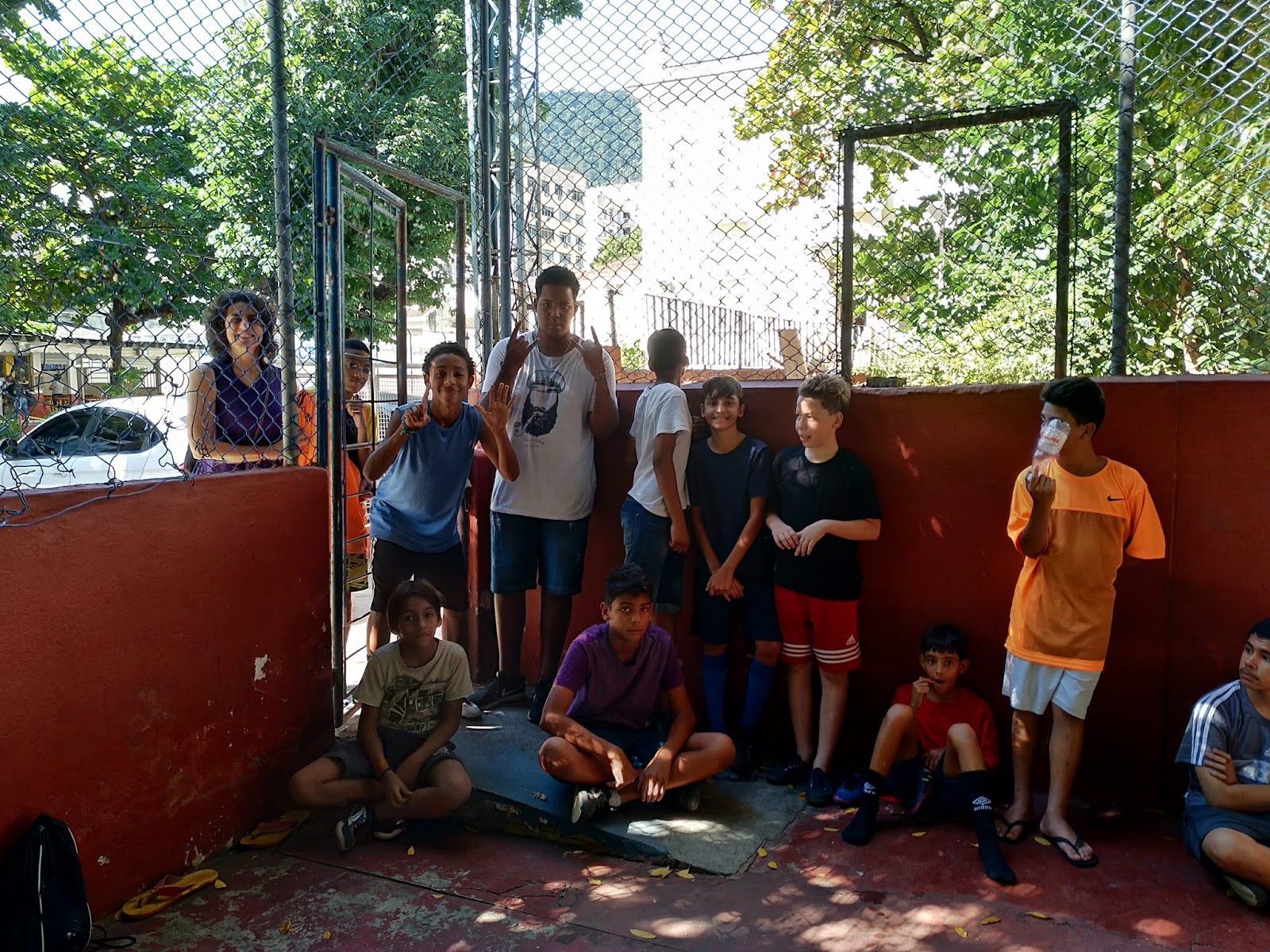 Como nossa escola não tem quadra, corremos atrás de uma parceria e a Universidade Cândido Mendes, muito próxima, gentilmente nos cedeu a sua.