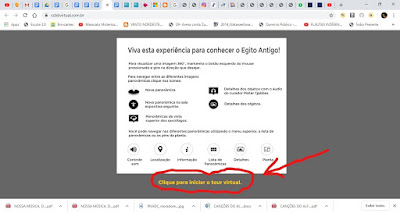 a janela abaixo. Em seguida clique nas letras em amarelo para iniciar o tour