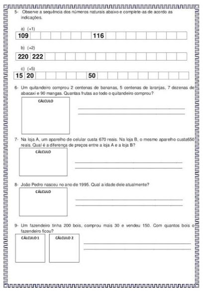 Atividades Numéricas e Pontos Cardeais e Colaterais - 4º e 5º Anos